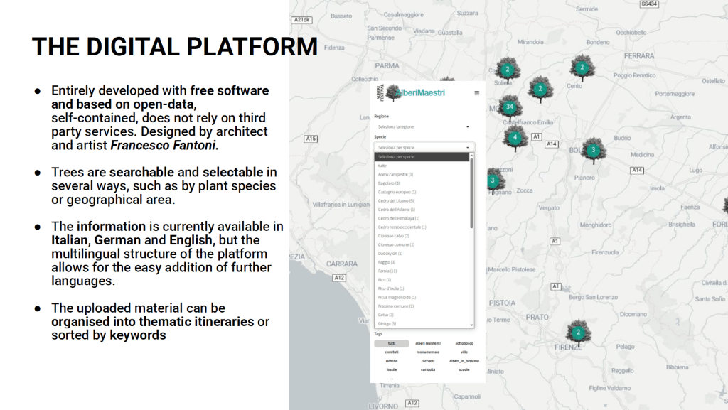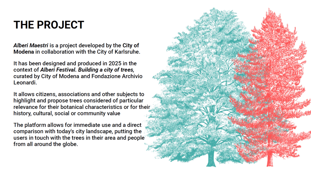 “Alberi Maestri” è una piattaforma nata con l’obiettivo di mappare gli alberi e rendere accessibile il patrimonio culturale verde delle città di tutto il mondo.