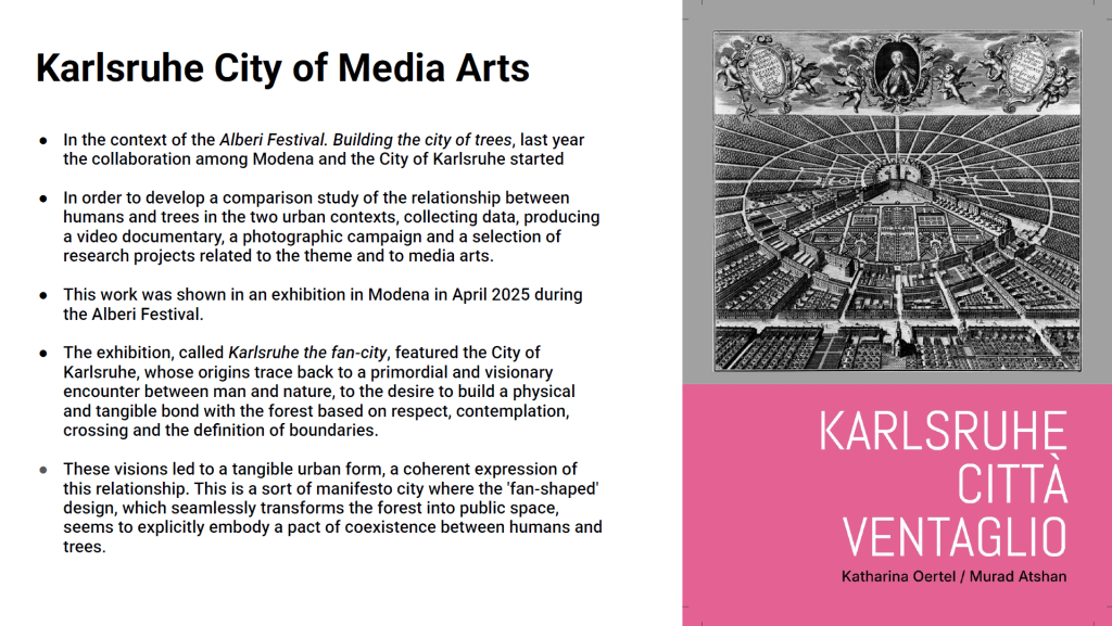 Il progetto è stato sviluppato dal Comune di Modena Assessorato alla Cultura e dalla Fondazione Archivio Leonardi, in collaborazione con la città creativa tedesca di Karlsruhe, nell’ambito di Alberi Festival.