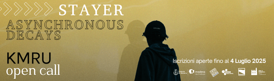 ‘Stayer – Asynchronous Decays’ offre la possibilità ai giovani artisti under 36 dell’Emilia-Romagna, interessati alla musica di ricerca ed alla sperimentazione, di partecipare ad una residenza artistica coordinata dal compositore kenyano Joseph Kamaru in arte KMRU e curata da Riccardo La Foresta.
